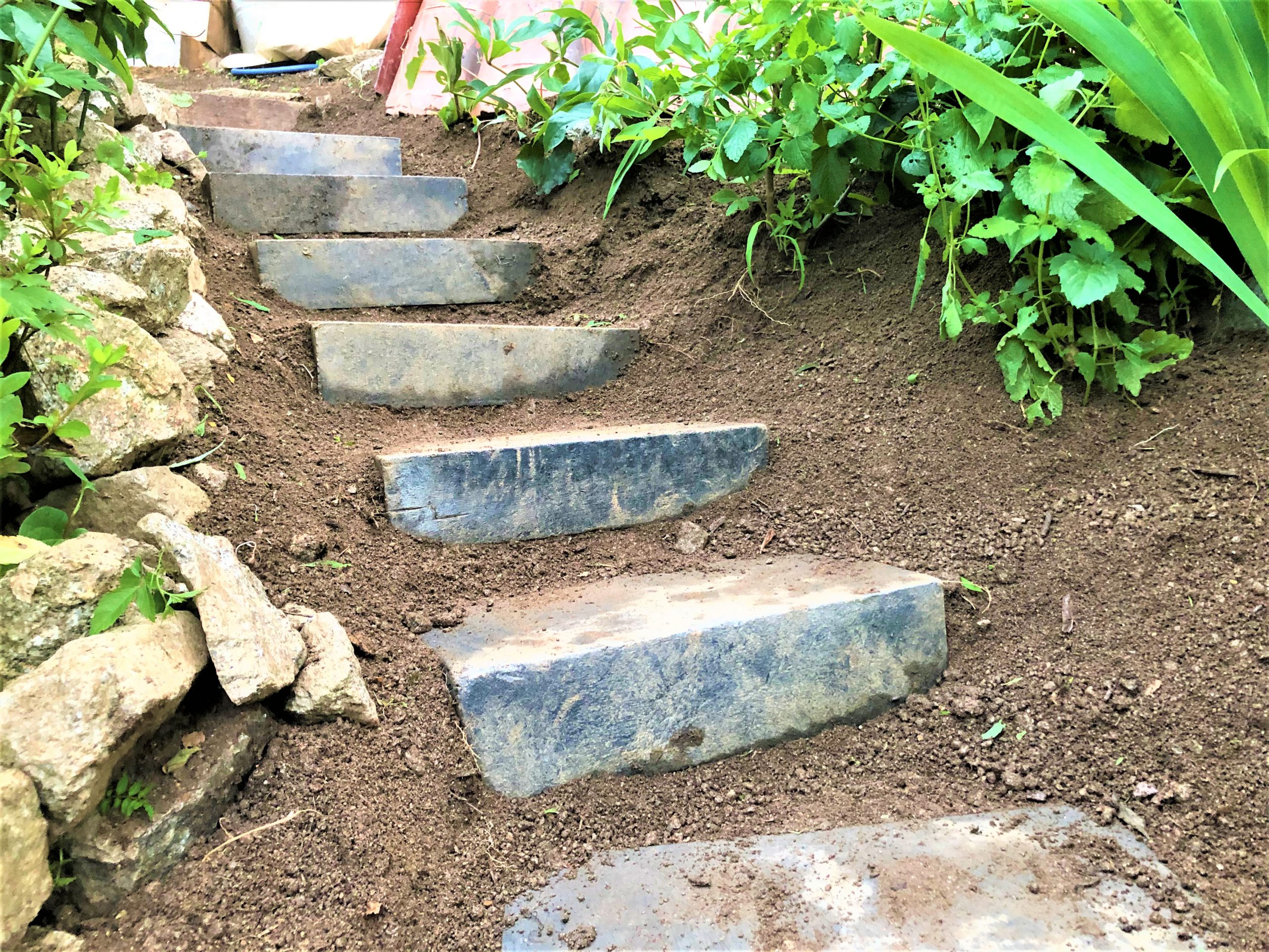 しばらくは仕事をしやすいように歩きやすくするための階段です。