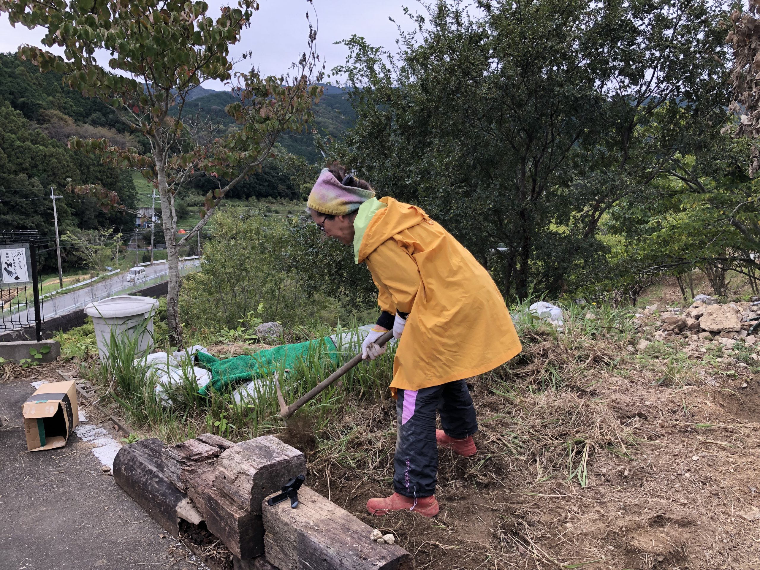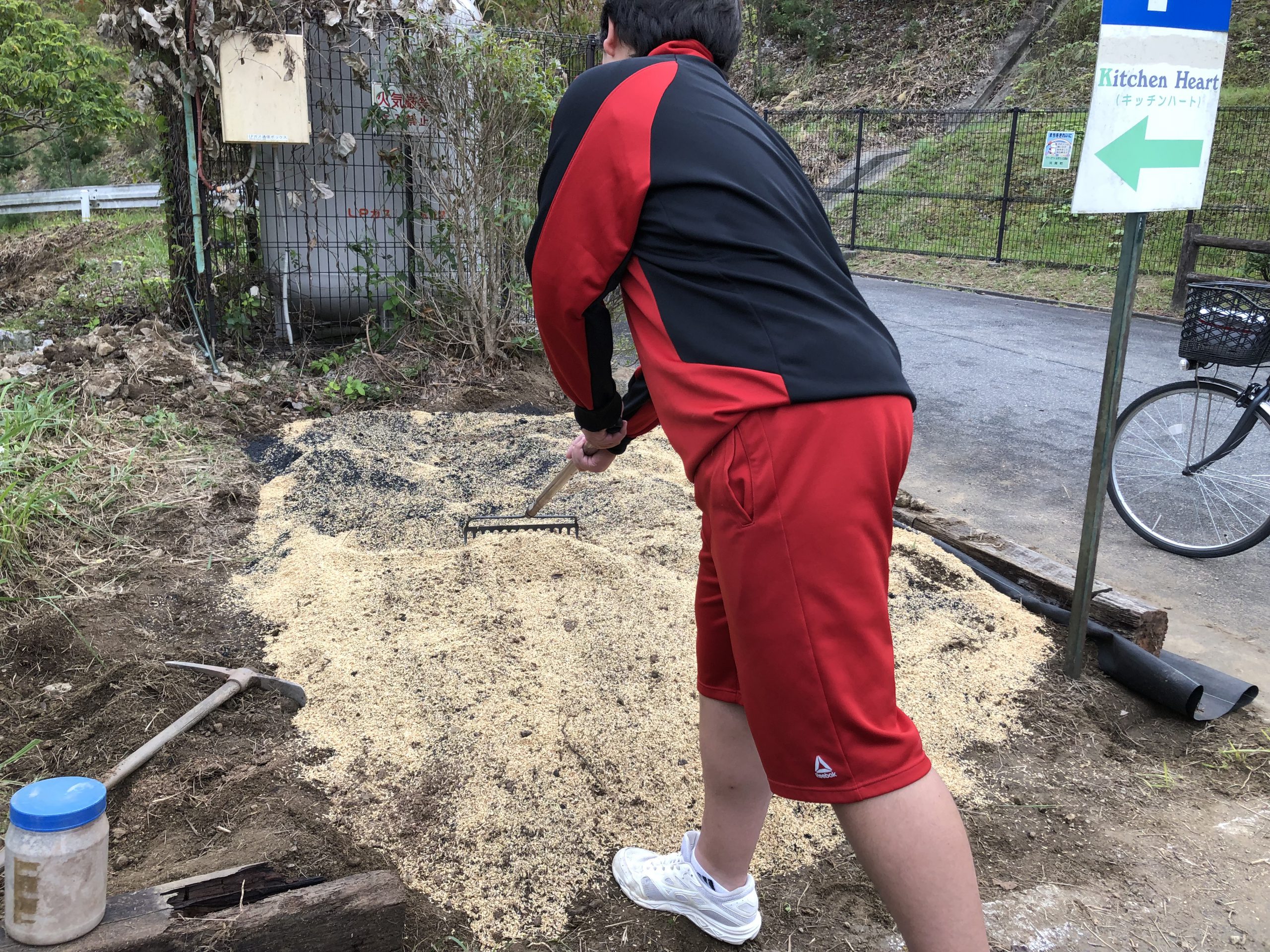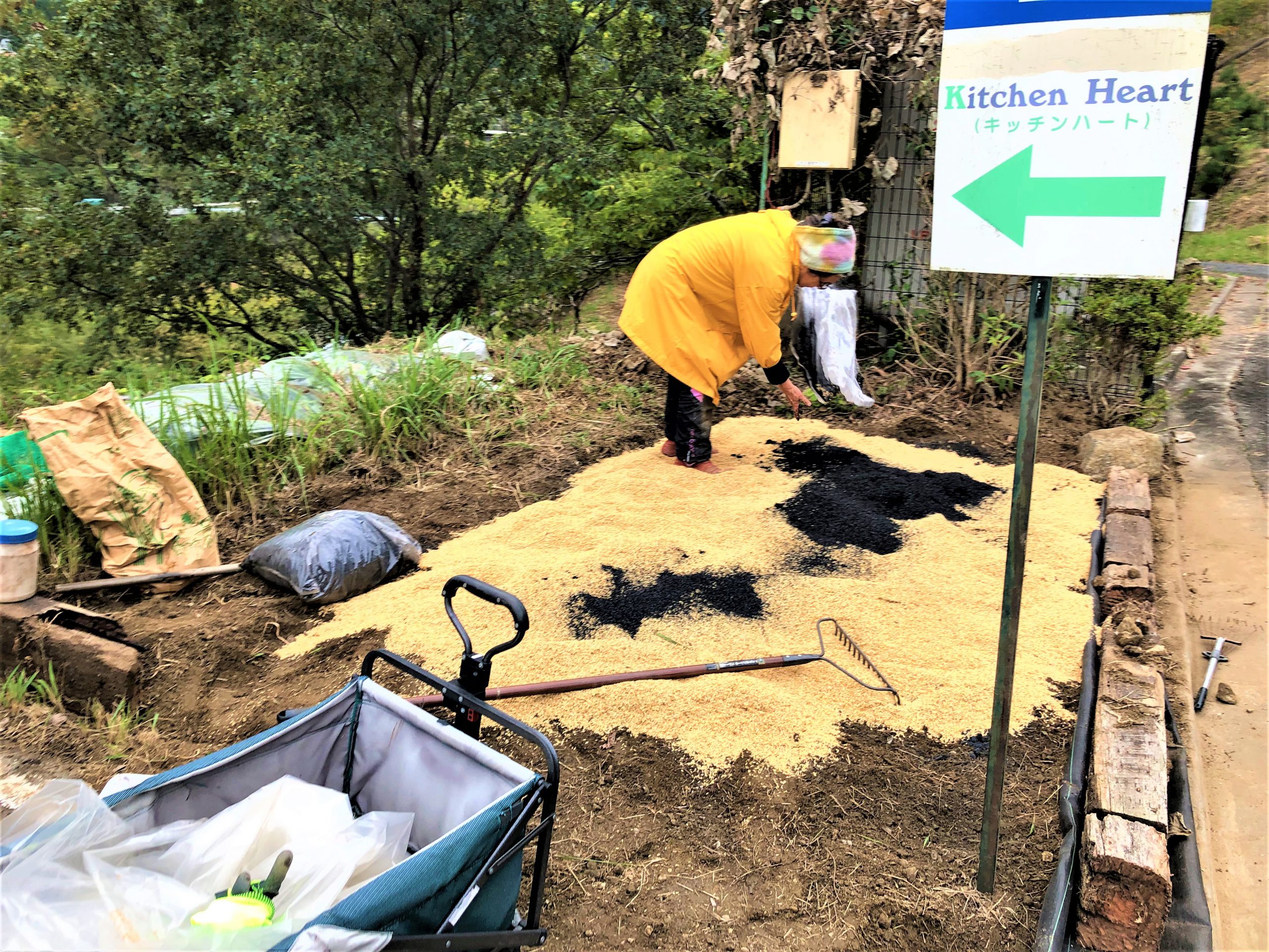 雑草やごみ、石ころををまとめたりと