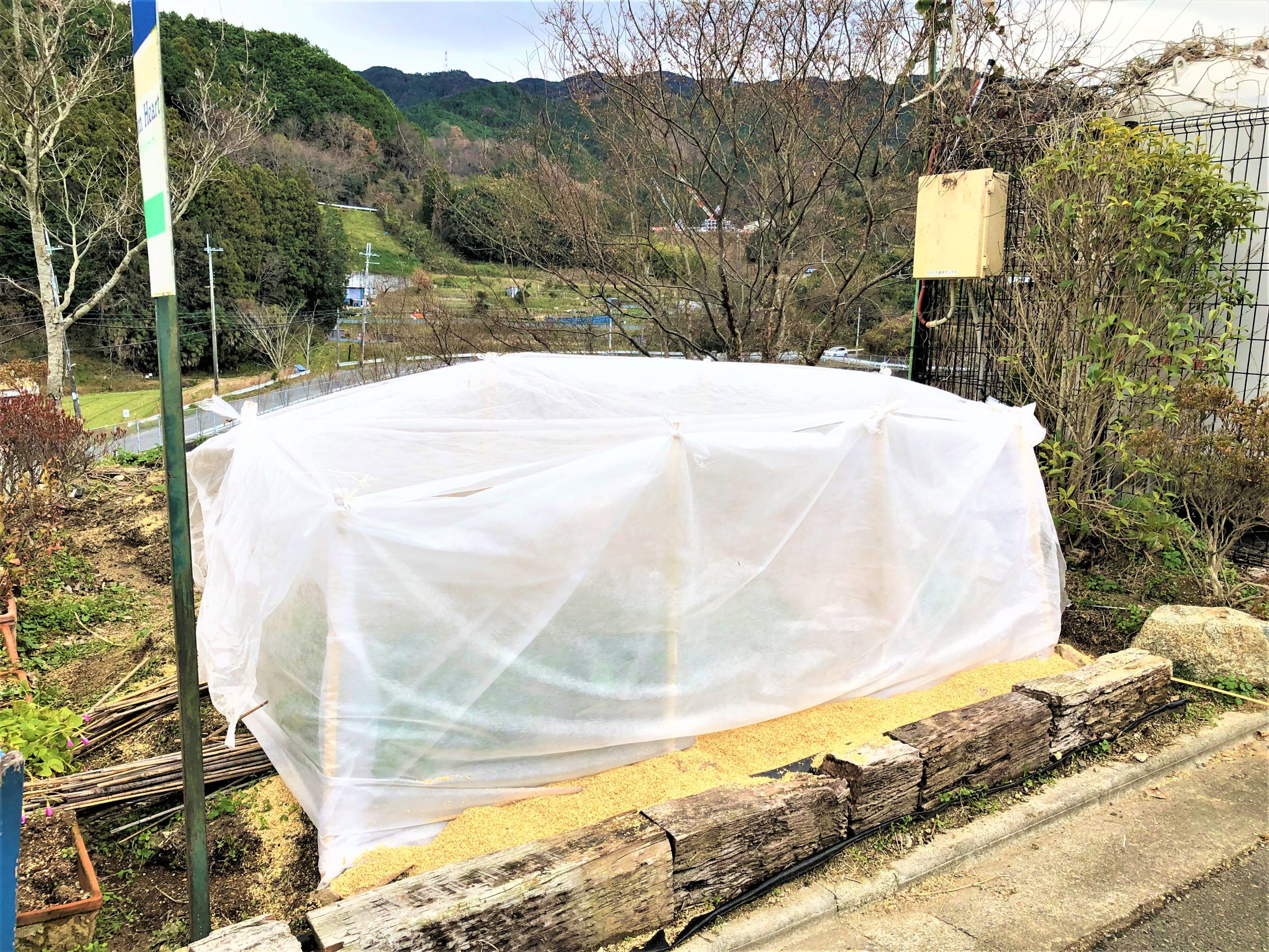 雪の予報に出来る限りの対策を練った菜園の風景です。