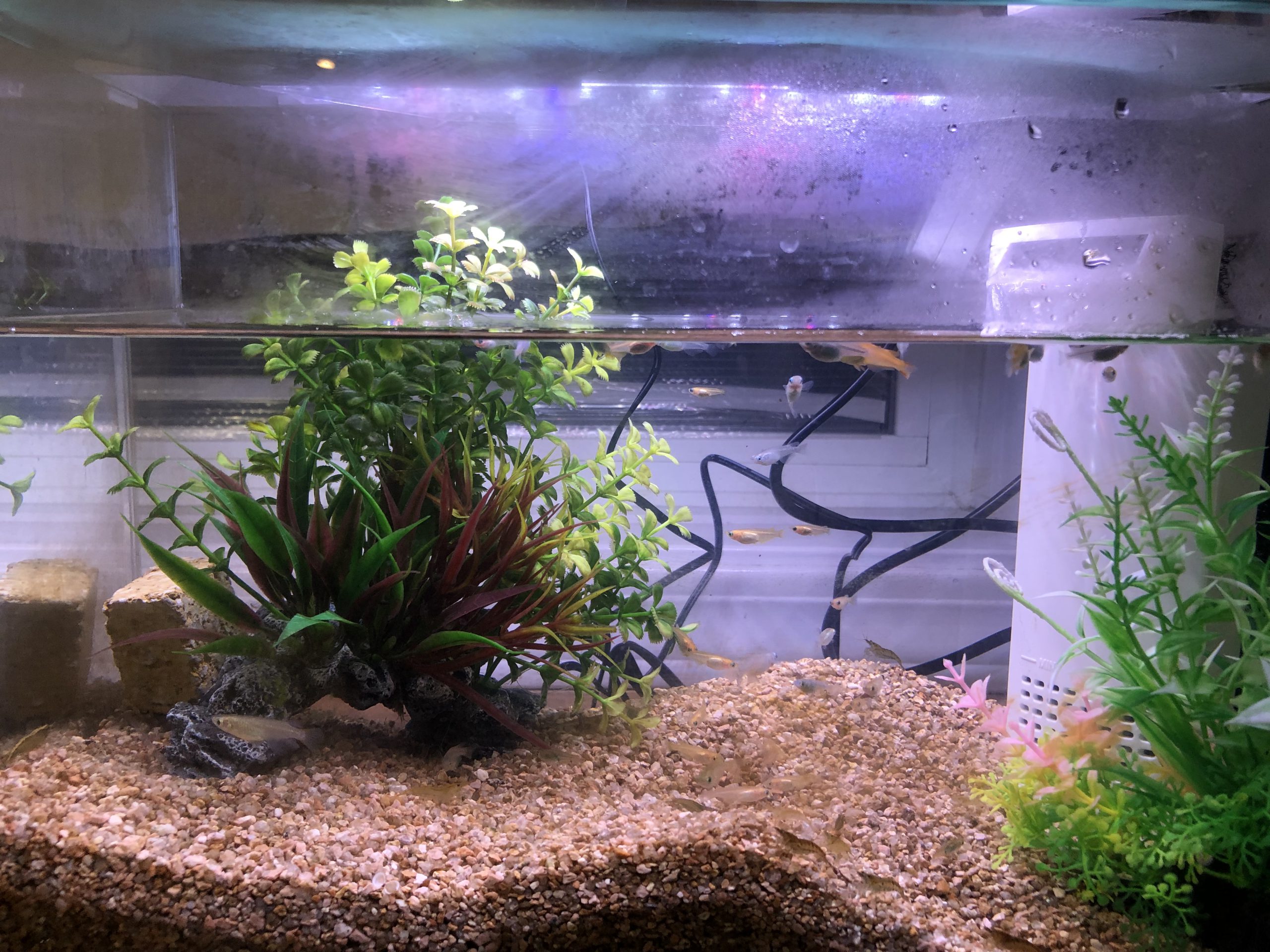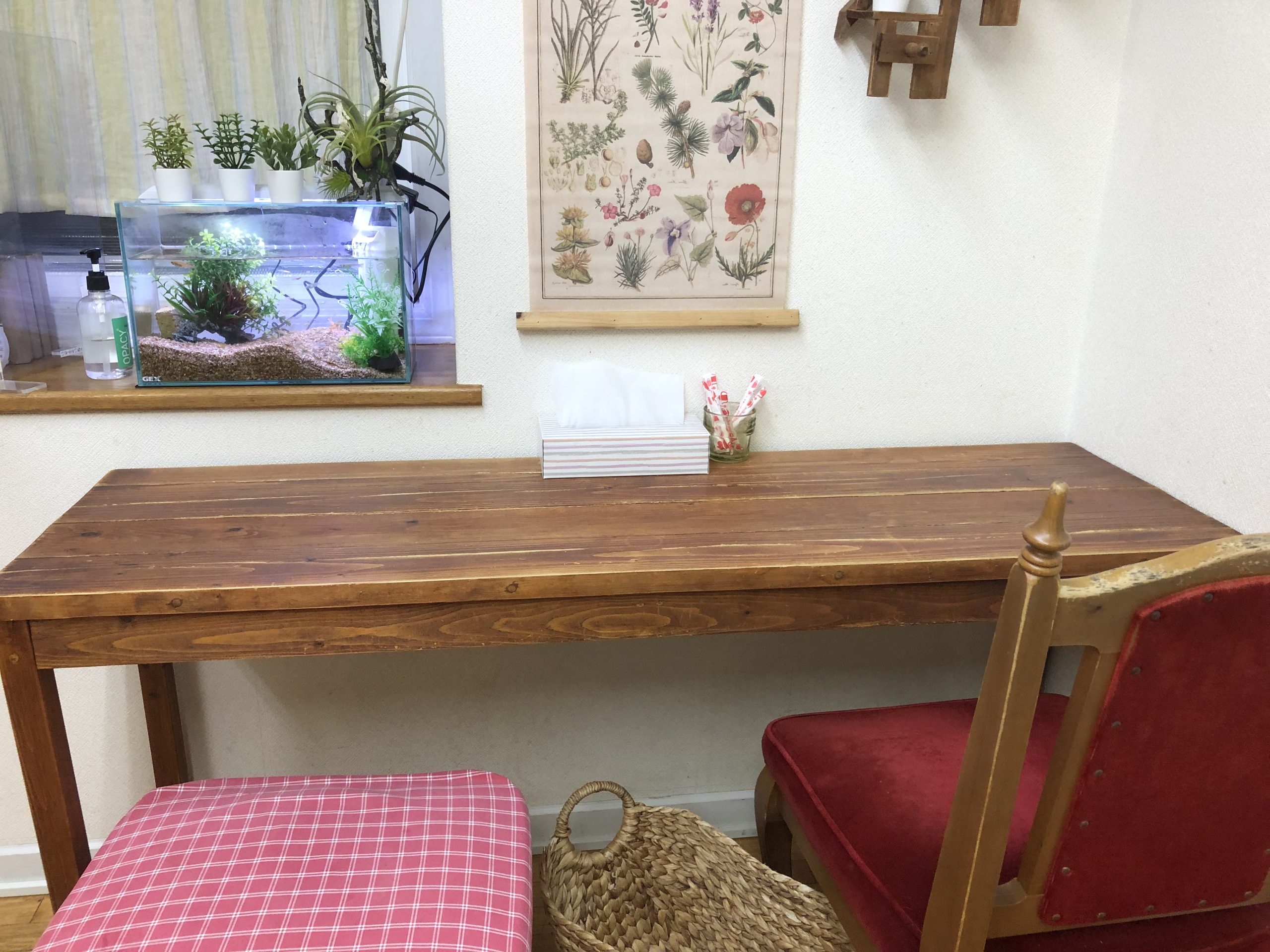 壁に向かっての座席をなんとか癒しの席にと思いついたメダカの水槽こうしてアクアリュームを