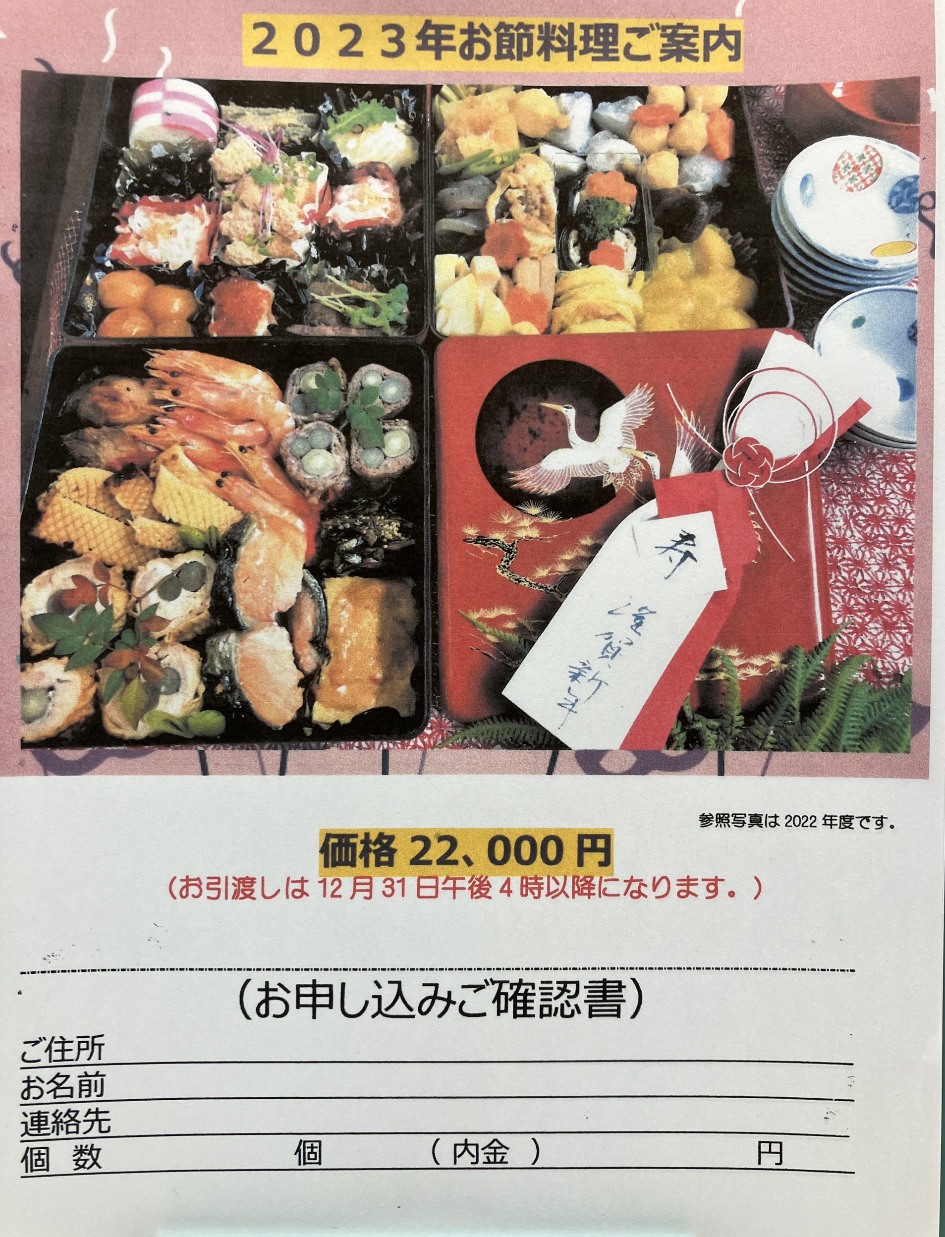お節料理のお申し込みの時期にはいり、